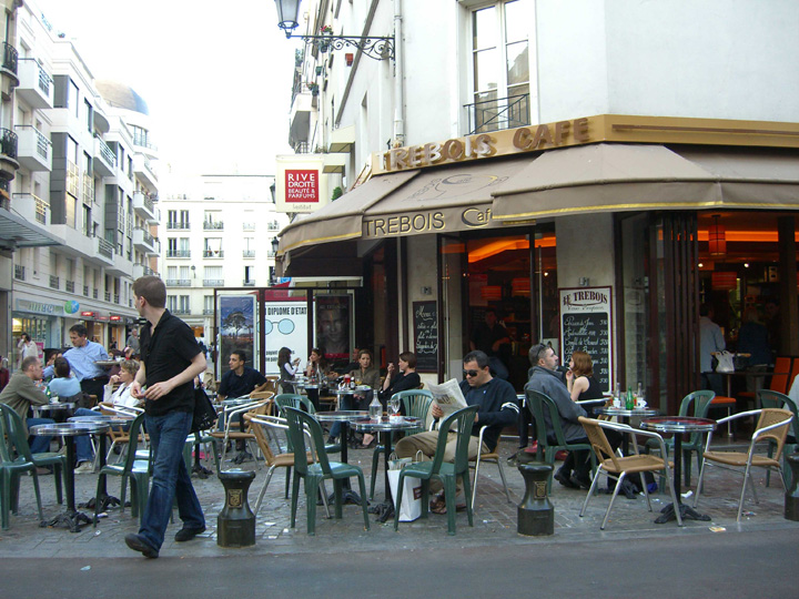 - We wandered a bit in the center of Levallois for a bit, scouting dinner possibilities. We had an espresso to wake up and an aperitif ("that red drink they're having") to relax before dinner. A group of buskers was doing their thing: 2 trumpets, an accordion, and a rhythm machine.