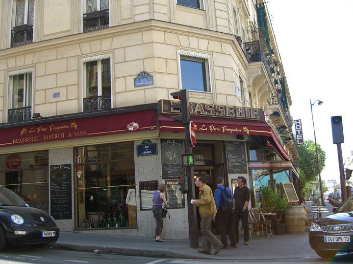 - We strolled past Notre Dame to the Latin Quarter, on the Left Bank. P gave us some commentary, since he went to school in that area. One interesting thing was an outdoor market on Rue Mouffetard, with fresh food (hot, cold, and raw), household goods, and a bit of this and that.