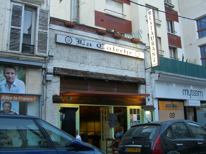 - Following the advice of a food guide we'd bought, we decided to go back to the place we'd been on Tuesday, the idea being that you'd get better service the second time. Of course, since the book wasn't really working for other advice (on making reservations — their advice was more appropriate in Arles), it's not surprising it didn't quite turn out that way. As on Tuesday, we got the set menu, but when it came time for dessert, we noticed that they had profiteroles, but not part of the set menu. So C asked (in French of course) if we could get one order of profiteroles instead of two set menu desserts. The answer was "Non!" Now on Thursday there'd been some discussion about the cross-cultural training that N. Americans get when they get posted to Paris, and apparently one of the things in the training is that (stereotypically) the first response to a request in France is negative. So even though it was a bit annoying, it was also a bit funny. C dug out his bargaining skills, honed in Mali, and eventually we did get the profiteroles, for a discounted price, though, not just substituted for the set menu desserts.