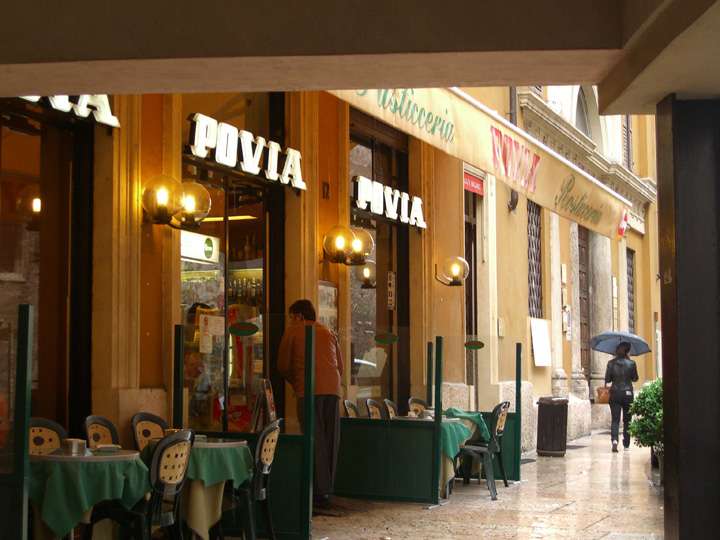 - We got a couple contemporary copperplate engravings from 19th century images of L'Arena, more shoes ("the ruby slippers"), and jars of wild boar sauce. They didn't have the ragù that we'd gotten last time, but the woman said that she preferred this type, and if you want a ragù you just add tomatoes. At the bookstore C gave the owner a challenge by asking for a mystery set in Verona, or at least in the Veneto (the region Verona is in). Eventually, he did get one, with a food theme, too. Later he saw a big promotional sign for it in another bookstore and he read in the paper that it was the third-best selling novel in Verona the previous week. Next time he'll ask at this other bookstore... The best selling non-fiction work was the Pope's "Jesus of Nazareth." The Italian press often refers to Pope Benedict XVI as Ratzinger, his family name, while the U.S. press never does. The hotel umbrella we had was stolen from the umbrella stand while were inside the bookstore. Sheesh! At least it stopped raining before we had to get back.